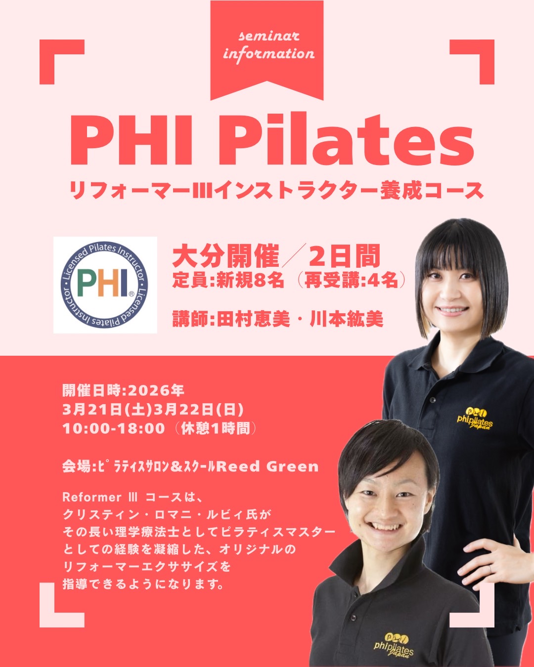 PHI Pilates Reformer Ⅲ養成コース@3月大分・東京開催のお知らせ
